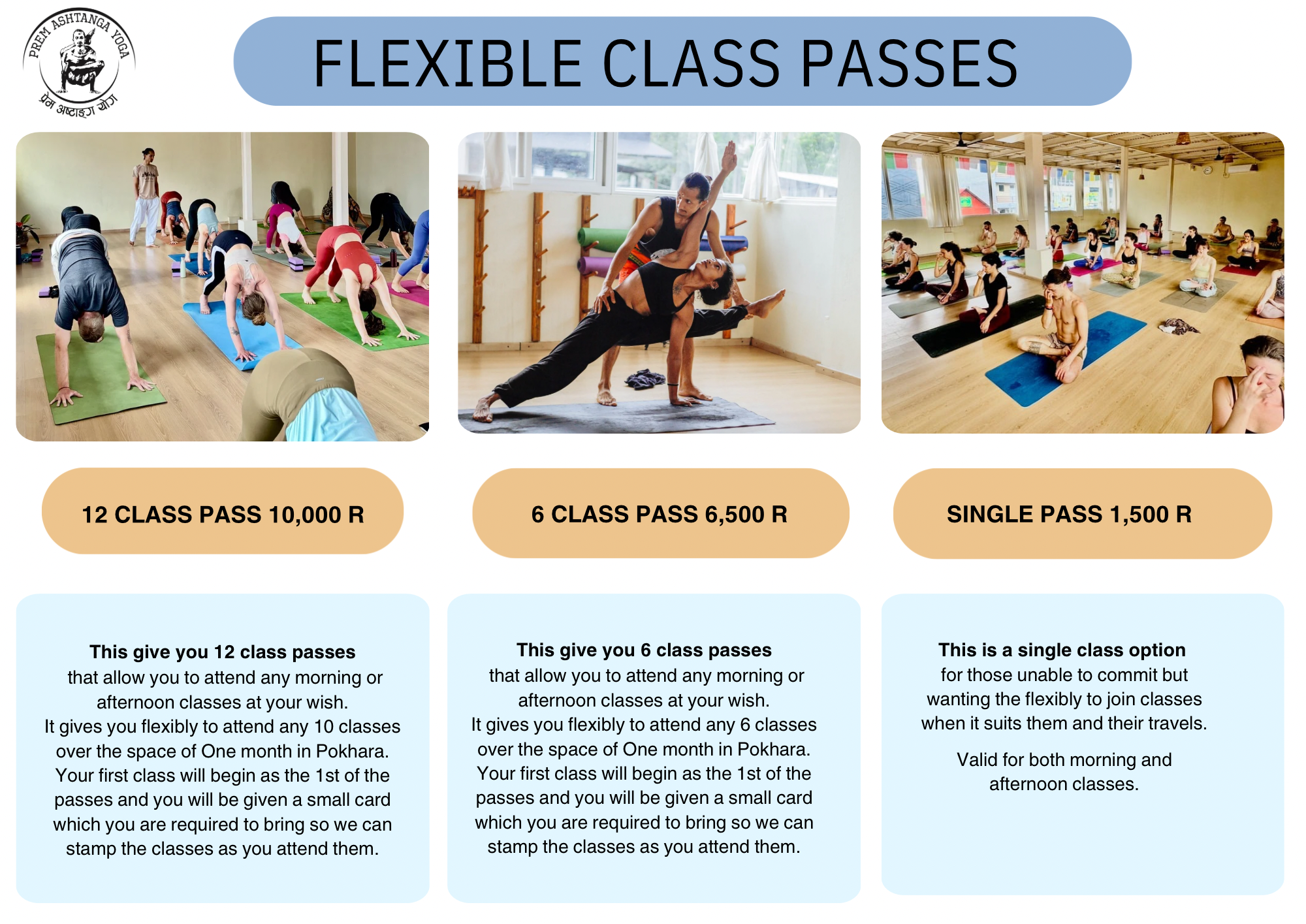 As mentioned, if you are an absolute beginner or prefer a slower-paced class, we suggest you attend the evening classes or the 8:30 am Mysore class.